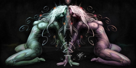 Gemini Heart She is torn by her split nature. She is both a living angel and a toxic suicide. The Gemini Heart binds the twins in limbo stuck somewhere between heaven and hell. Purchase Prints